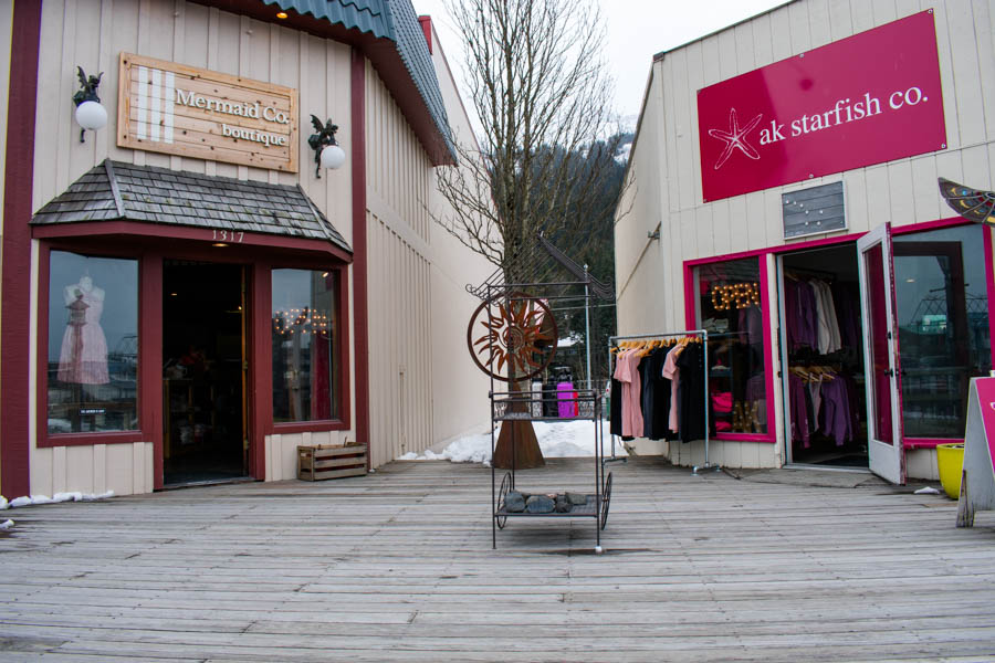 The town is relatively small. You could walk the entire town in under 20 minutes. Stroll past the stores overlooking the harbor, popping in and out of the small souvenir shops. I checked out the Mermaid Co. boutique and the AK Starfish Co. for some window shopping. Mermaid Co. boutique had stylish yet practical pieces, such a fun rain boats and jackets perfect for Alaska. Starfish Co. has the best souvenirs including cozy sweatshirts, locally designed jewelry and soaps. Next, I headed over to Alaska Seafood Grill for a quick meal. Alaska Seafood Grill has a casual atmosphere but had the best french fries I have ever had. Keep in mind that a lot of shops and restaurants aren’t open until the high season (Beginning late April/ early May).
